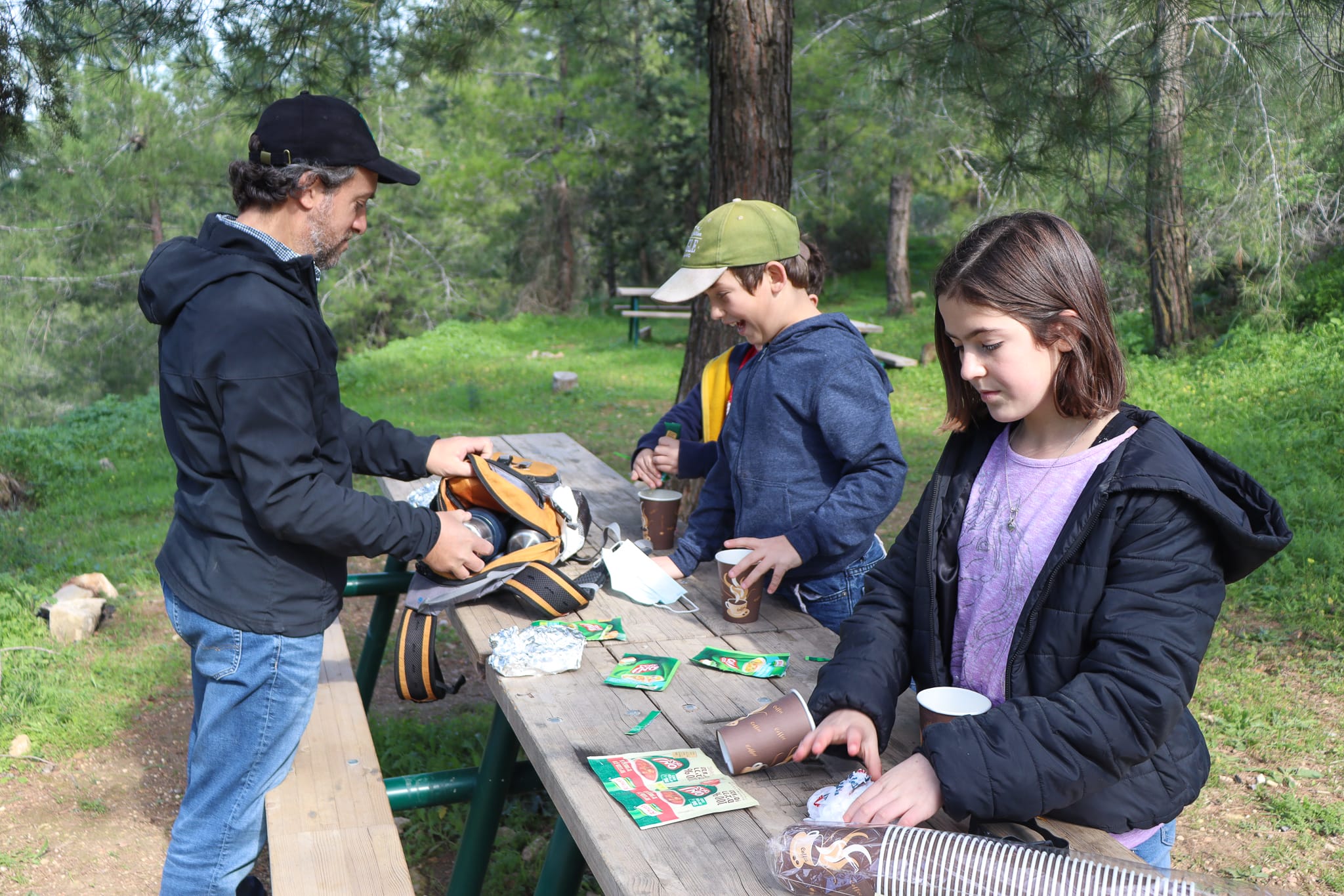 So yesterday, to get a little break and escape to great outdoors, we planned a hike near home to Ein Tzurim: a beautiful spring near the woods around Rosh Tzurim. We packed up a picnic of soup and sandwiches and set off through the trees.