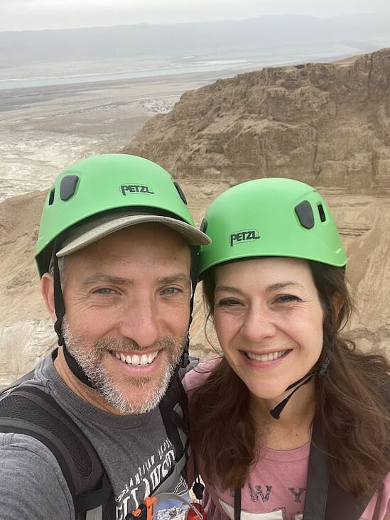 We knew that we had to go try out this new suspended hike at Masada, a trail that included the use of climbing equipment and helmets, all supplied by the Parks Authority, ASAP. But how could we hike this trail during a heat wave in the desert near the Dead Sea, which is the hottest part of Israel?