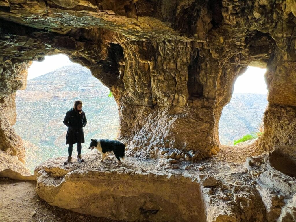 This cave, the one in Nahal Tekoa, is a new discovery of ours. After years of hiking along the same trail, we found this magnificent cave there just a week ago. On that rainy Friday, we were also struggling to find an acceptable outing for the weather. I suggested the Tekoa Canyon; just twenty minutes from our home, the beautiful Judean Desert canyon would likely be much warmer than our town. And we could eat breakfast sheltered from the rain in the well-known Haritoun Cave.