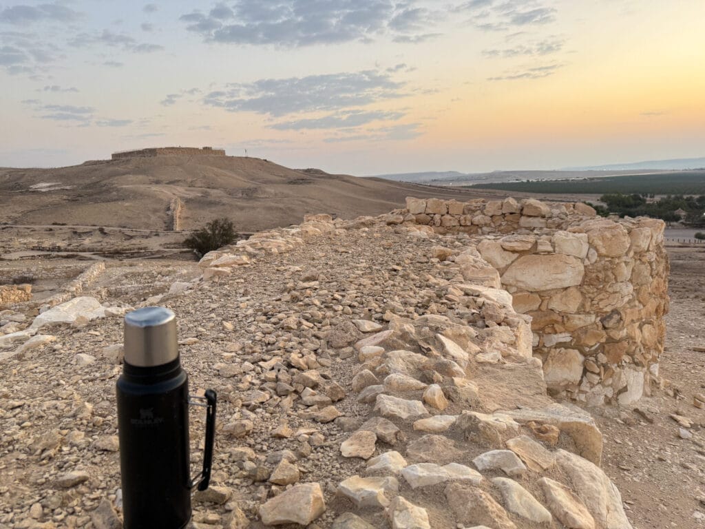 A plan was hatched: we would pack up a thermos of hot coffee and head out the door in the wee hours of the morning to get to Tel Arad by 6:20 AM – plenty of time to find a perfect spot to watch the sunrise. After eating breakfast, etc, we would go into the National Park itself to explore the ancient city we’ve been wanting to discover for so very long.