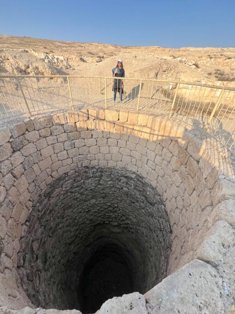 We climbed down into an ancient water cistern, which supplied drinking water to the city along with water needed for religious purposes. We saw the remains of dwelling places, where archeologists had discovered stones inscribed with Hebrew lettering and some letters addressed to “Elyashiv son of Eshiyuahu”, who was the commander of the fortress. These finds, we learned, are currently housed in the Israel Museum.