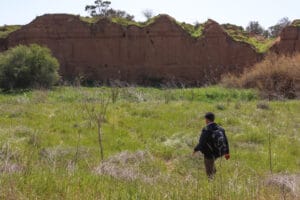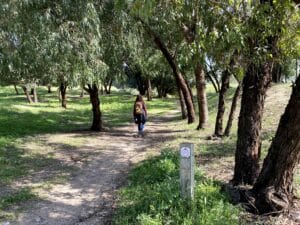 When you reach this structure, walk past it to find the blue trail and the Grar River. Then make a left.