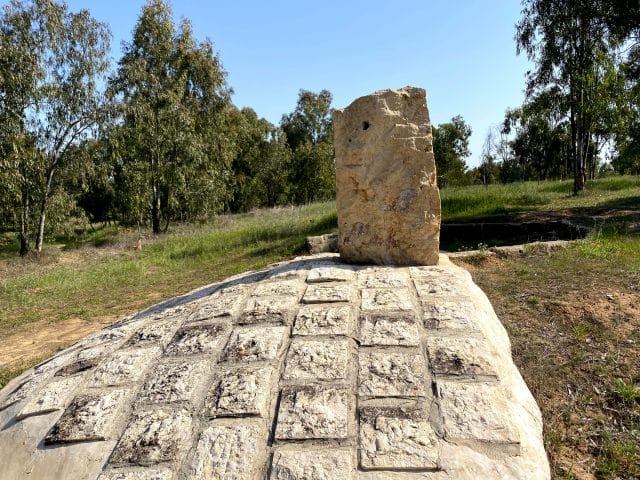 This is where we began the trail. Beyond this monument, find the beginning of the bike trail.