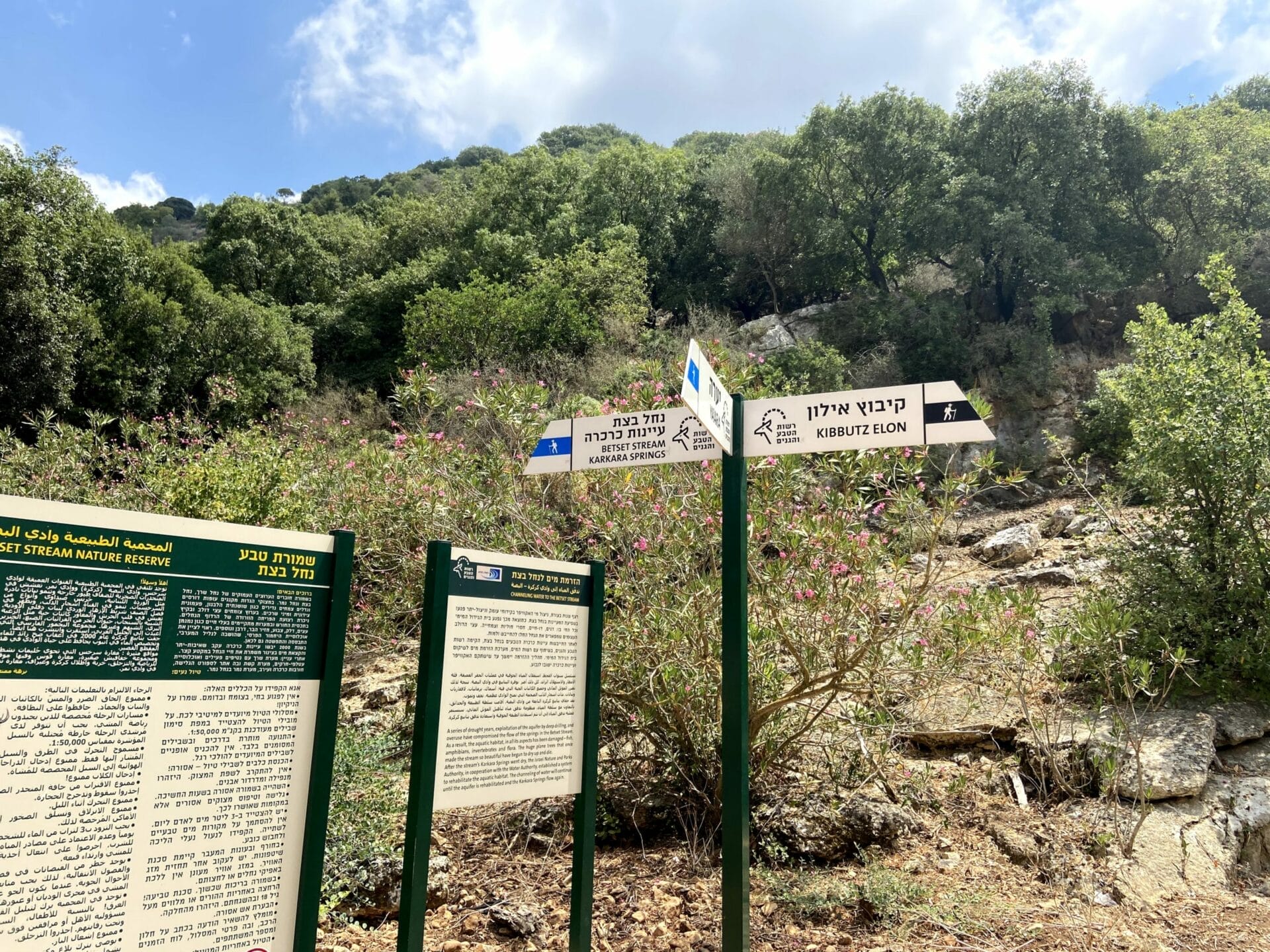 Continue to follow the blue trail to the water, then turn back and go back the way you came. If coming from Eilon, you will follow the black trail to the blue trail here.