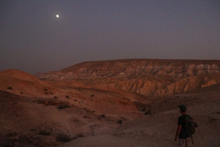 In the distance, desert dunes glowed gold on one side while the city of Arad twinkled on the other.